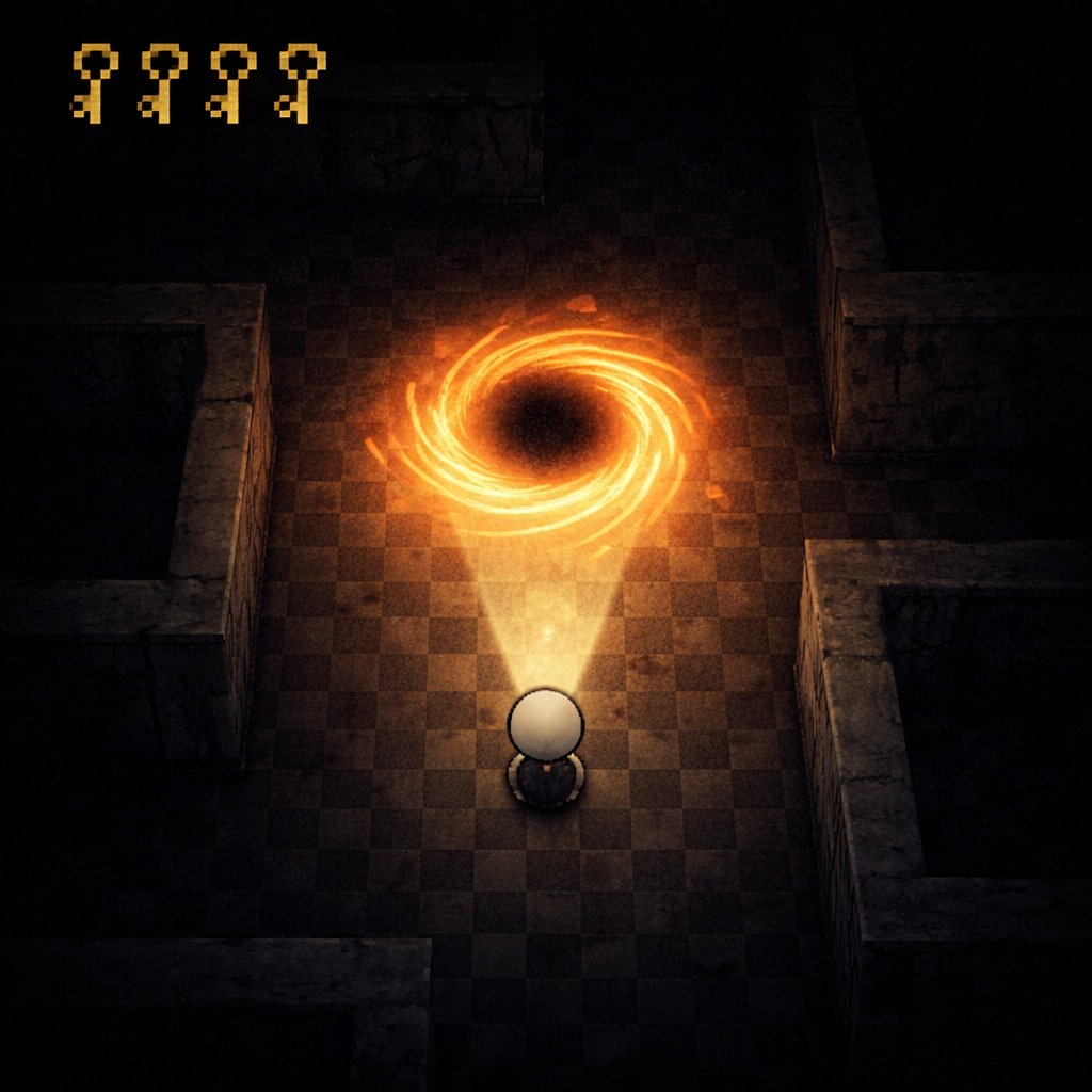 navigate a maze of decayed hallways — collecting keys to unlock