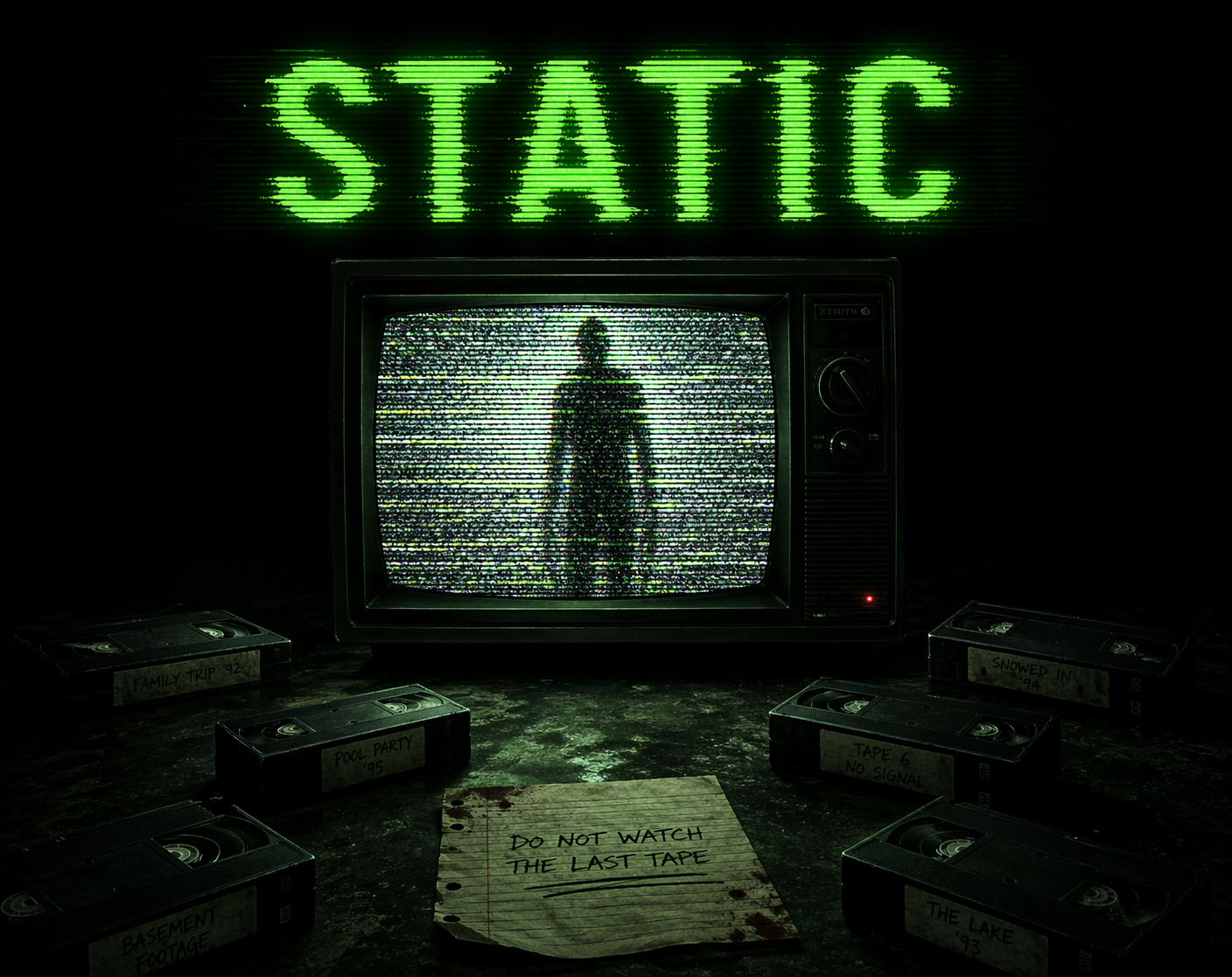 **STATIC** is a browser-based psychological horror experience built around a retro VHS/CRT aesthetic. You insert tapes into a virtual VCR and watch recorded footage of someone named M documenting increasingly disturbing events in their home.